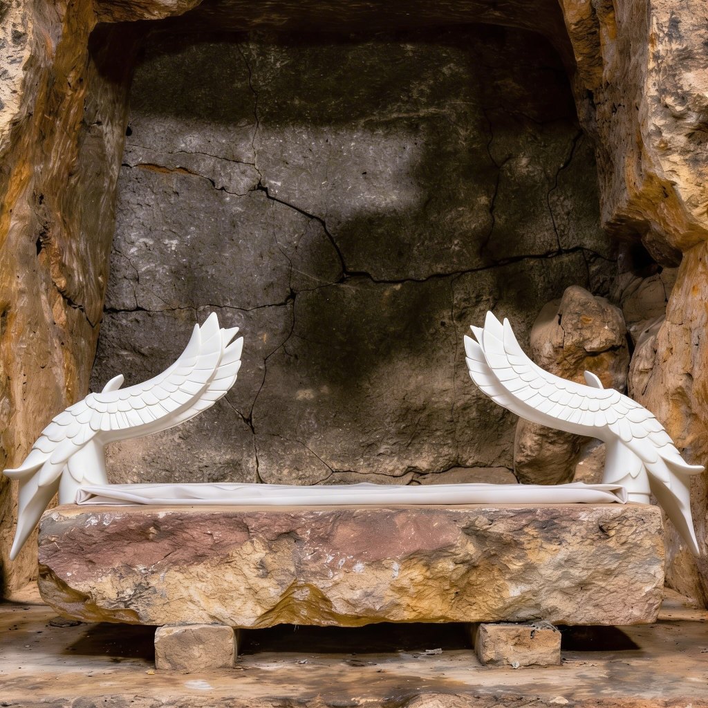 “And she saw two angels in white, sitting where the body of Jesus had lain, one at the head and one at the feet.” (John 20:12)